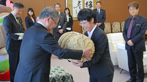 スポーツ【Web限定】卓球の薄井選手に県産農畜産物贈呈!