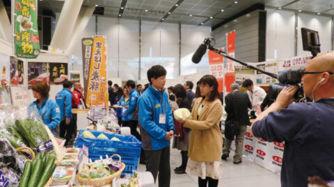 JAズームイン国内最大級、6ラインのきゅうり選果機 販促キャンペーン隊も笑顔でPR