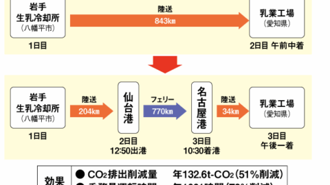 ニュース&トピックス岩手の生乳 トラックからフェリー輸送に一部移行
