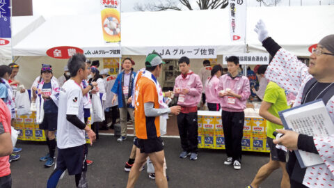 ニュース&トピックスさが桜マラソン2018で焼き餅を配布