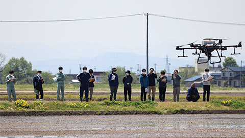 ニュース&トピックス農業用ドローンによる水稲種子散播実演会