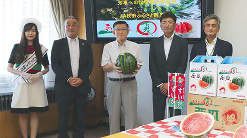 ニュース&トピックス秋田県産スイカのシーズン到来 県知事へ出荷を報告