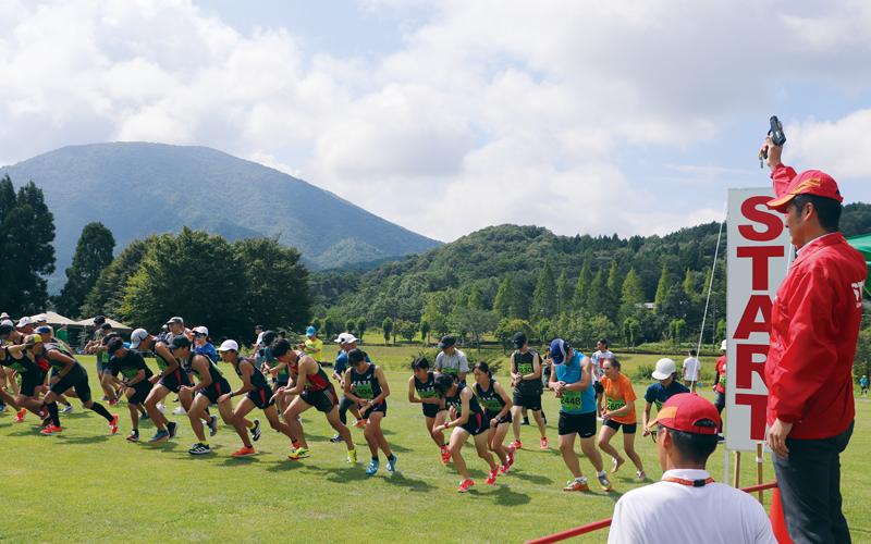 標高700mの爽やかな高原地帯に広がる芝常設のクロスカントリーコースがある「道後山高原クロカンパーク」を舞台に、1〜88歳の一般ランナーと実業団のトップアスリートらが参加するひろしまクロスカントリー大会が行われました。当日の最高気温が30度を超える中で、参加者の皆さまに「藻塩はっさく水」「藻塩レモン水」を提供しました。水分と塩分の補給を兼ねておいしく飲んでいただきました。