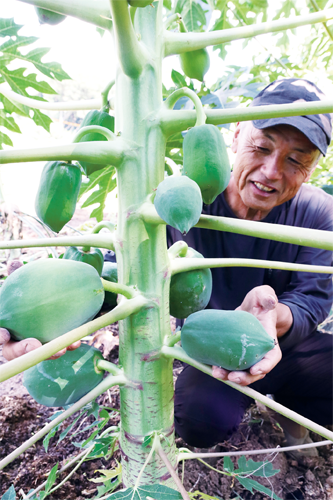 JAは2021年、青パパイアを導入しました。青パパイアはあくが強く、鳥獣による食害に遭いにくい作物です。病害虫も付きにくく、栽培管理が容易な点も利点として挙げられます。