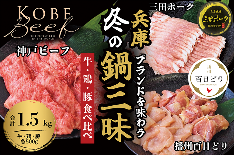 世界の舌を魅了する「神戸ビーフ」、第15回地鶏・銘柄鶏好感度コンテストで最優秀賞を受賞した「播州百日どり」、環境・飼料・品種にこだわり抜いた「三田ポーク」を鍋料理に使いやすいカット・量で個包装してお届けします。