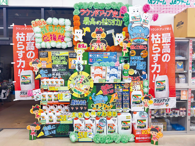 売場全体に手作りPOPやCS甲子園キャラクターを散りばめたJAファームみゆきは、お客さまから「家に持ち帰りたい」と好評の農薬希釈表へのこだわりや「お客さまの手に取りやすさ」を意識した陳列のポイントを話しました。