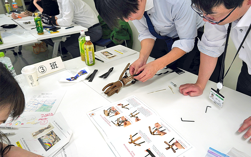 前半では、リスペクトとチームビルディングの意義を学び、全農グループの「2030年のあるべき姿」を確認しながら、コミュニケーションや組織づくりの方法について考えました。後半では、発展途上国で手の不自由な方のための「義手」を製作する作業を通じて、エンドユーザーの視点を養うとともに、異なる組織が一体となって業務を遂行する方法を習得しました。