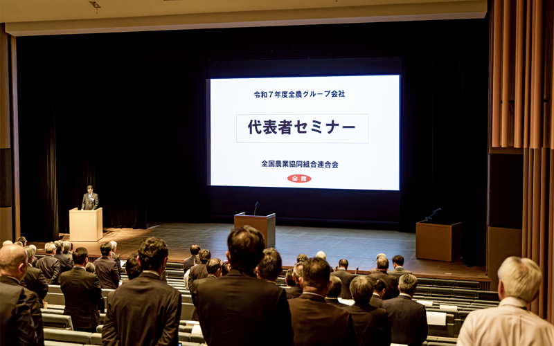 全農は12月11日、「グループ会社代表者セミナー」を日経ホール(東京都千代田区)で開催し、会社代表者および本会役職員など約230人が参加しました。昨年に続き、全国から約120人が実出席し、オンライン会議システムも併用しました。