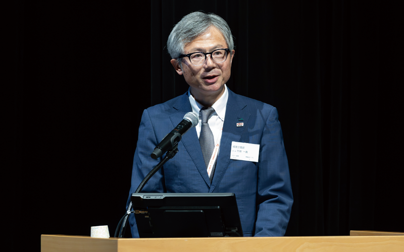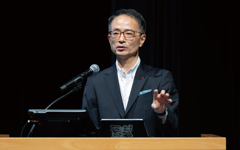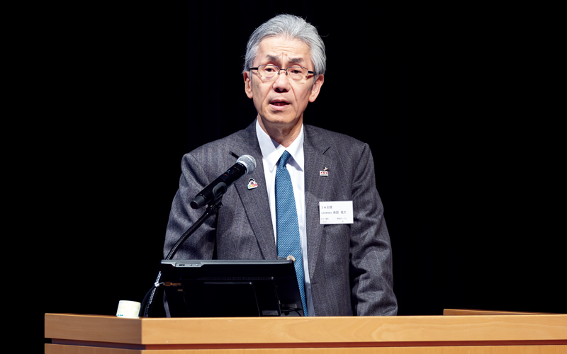 日清食品(株)常務取締役の深井雅裕氏は、物流事業の変化を中心に、本会を含む各企業と連携したサプライチェーンや付加価値の構築、デジタル化への挑戦による将来構想について講演しました。