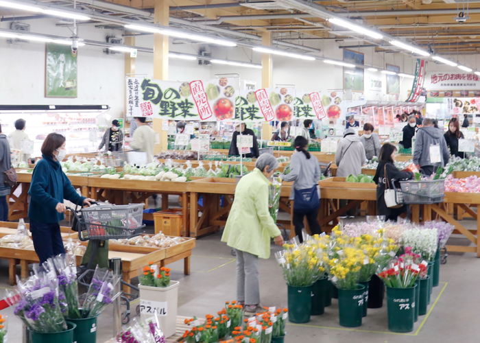 店内では、米や精肉、花、手作り加工品など豊富な品ぞろえで、野菜や花などの苗売り場は中国地方最大級の規模を誇ります。お客さまの声を反映し、境港直送の鮮魚売り場を設置するなど、サービスの向上に努めています。また、創業祭や季節のイベントを通じて、旬の農産物PRや生産者と消費者とのふれあい交流の場作りにも力を入れています。