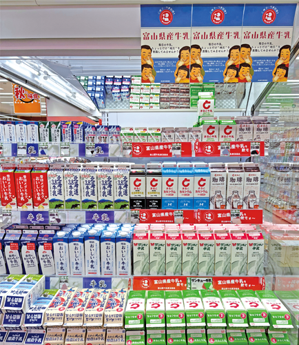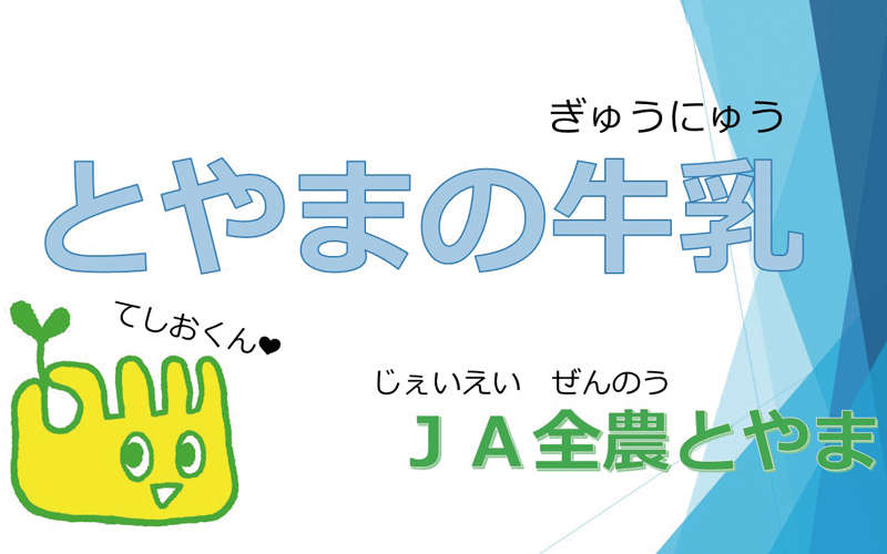 富山県本部は、富山県産牛乳の統一マークが新たに完成したことから、小学校での特別授業や量販店の売り場でのPR強化を通じ、食育の推進、消費拡大と地産地消に取り組んでいます。