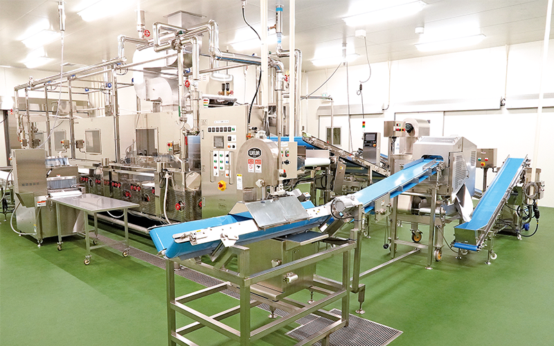同工場は実需者ニーズに幅広く対応するため、「焼き」「スチーム」「カット」「ペースト」といった多様な加工機能を備えました。