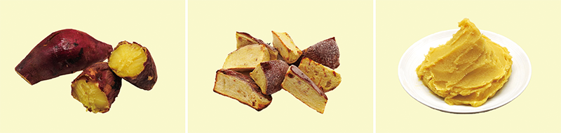 左から「冷凍焼きいも」「冷凍グリル甘藷(かんしょ)」「冷凍甘藷ペースト」
