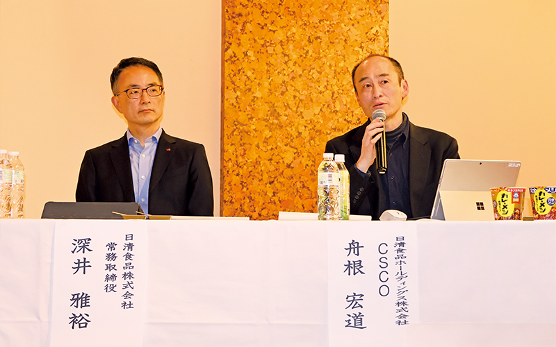 日清食品・深井常務(左)と日清食品HD・舟根CSCO