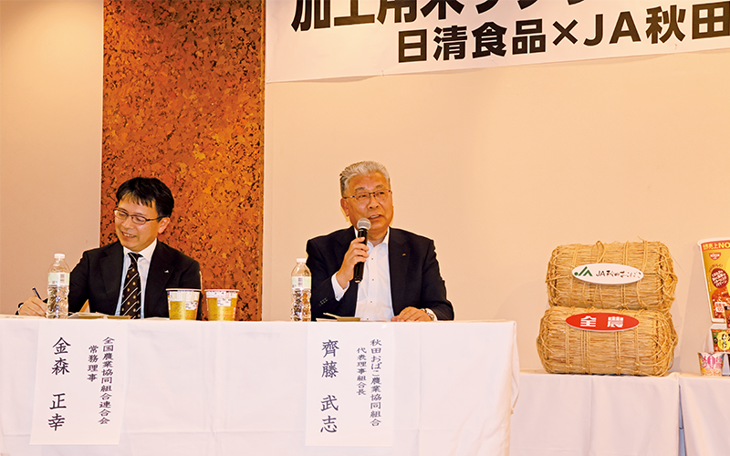 日清食品との交流を記念して、秋田県のブランド米である「サキホコレ」を使用した製品の販売などがあると、生産者の加工用米生産に対する意欲向上につながると思います。