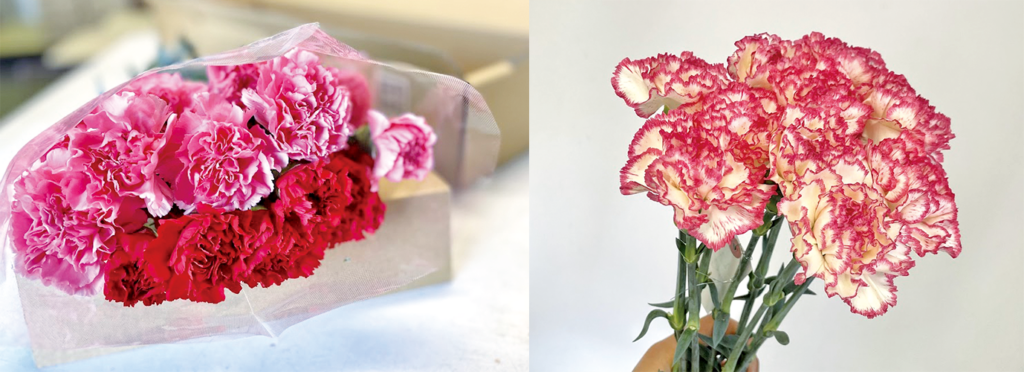 花づくり日本一といわれる愛知県で、丹精込めて栽培されたカーネーション。フリルのように波打つ花びらが華やかで、母の日の贈り物としても長年親しまれてきました。