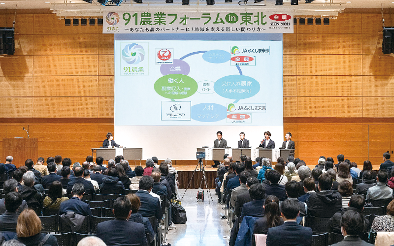 全農の主催で2月に開かれた「91農業フォーラムin東北」。仙台市内の会場には約500人が参加し、市民や企業など様々な人が農作業に関わることで地域農業を支える意義について語り合いました。コーディネーターを務めた小谷あゆみさんが報告します。